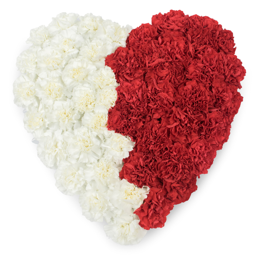 Embrace elegance with our Heart of Carnations Bouquet, beautifully arranged by Handy Flowers. This sophisticated bouquet features a mix of white and red carnations, artfully arranged in a heart shape to symbolize love and sympathy.